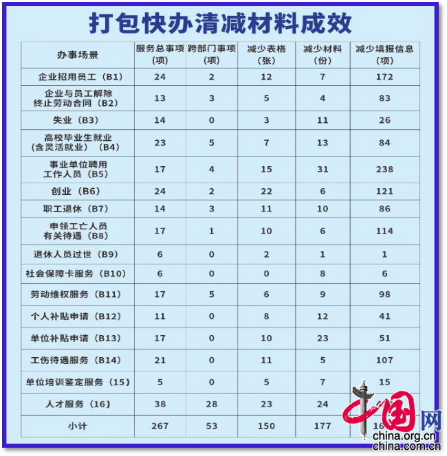充分发挥“大集中”系统优势,以“大人社”思维梳理服务事项,通过数据共享、业务协同等方式,推进跨业务、跨部门事项简化办理。依托在“免申即办”“八步变一步”等方面的创新探索,南宁市深入推进“人社服务快办行动”,按照“一包受理,可大可小;一站接收,可窗可网;一套材料,可拆可合;一线评价,可好可差”的打包思路,在全国率先或创新上线“高校毕业生就业”“劳动维权”等16个“打包一件事”,推动20多个部门50多个事项跨部门“打包办”,提供“打包办”“提速办”服务80万人次,工作效率领跑全国。2021年7月,南宁市对人才服务“打包一件事”进一步优化升级,梳理整合全市39个单位72个人才服务事项,上线全国首个多部门、多渠道、多功能集成的“智慧人才”一体化服务平台,实现人才政策“一站宣传”、人才资讯“一窗浏览”、人才待遇“一键测评”,人才服务“一网通办”、人才招聘“一体服务”。