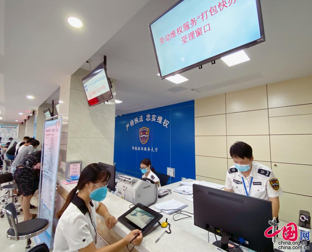 2020年8月,南宁市劳动监察机构工作人员正在指导群众将劳动维权相关“一件事”“打包”办理。
